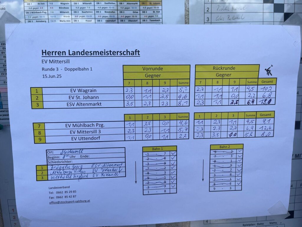 Am 15. Juni 2025 zeigte sich die Eisschützen-Mannschaft, angeführt von Moar Matthias Aigner, in Bestform. In der Vorrunde wurden 8,1 Punkte und in der Rückrunde 6,9 Punkte erzielt, was insgesamt 15,0 Punkte ergab. Damit liegt das Team zur Halbzeit mit 34,5 Gesamtpunkten auf dem 2. Platz, knapp hinter Gries im Pinzgau (36,8 Punkte). Moar und Obmann sind mit der Leistung sehr zufrieden. Vor den Sommerferien steht noch ein Wettkampf in Saalfelden an, bei dem das Team ein starkes Ergebnis anstrebt.