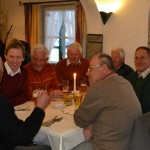 Im Anschluss ging es zum Bratlessen ins Hotel Lebzelter. Die Wirtsleute Monika und Harald Steiner versorgten die Teilnehmer mit einem hervorragend zubereiteten  Schweinebraten, die beiden Bürgermeister kümmerten sich das die Kehlen nicht trocken blieben.