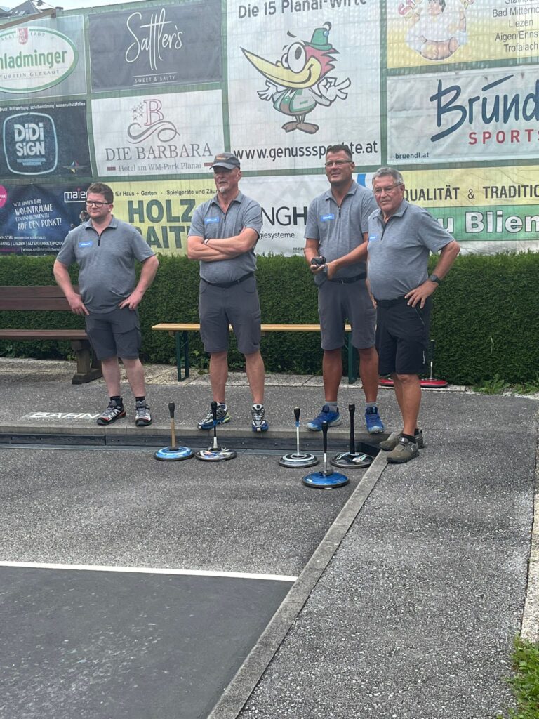 Wie jedes Jahr im August, traf man sich auch heuer wieder zur Ennstaler Meisterschaft. Diese Mal waren die Mannschaften zu Gast in Schladming. Bei tollem Wetter aber nicht ganz einfachen Bahnbedingungen, erspielte sich unsere Mannschaft, nach einem etwas holprigen Start den 3. Platz. Gewonnen haben das Turnier die Gastgeber, der EV Schladming, mit 19,2 Punkten. Den zweiten Platz holte sich der EV Eben / Pongau mit 18,5 Punkten. Wir gratulieren allen Mannschaften ganz herzlich und freuen uns auf das nächste Meisterschaftsspiel im Herbst am 8. September 2024 in Altenmarkt.