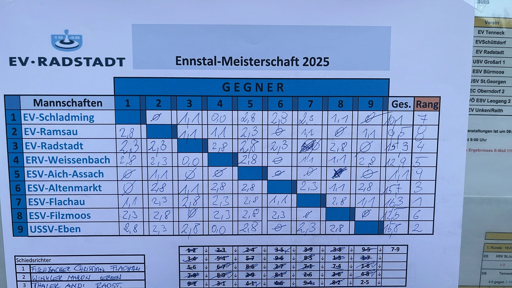- Platz und Ennstalmeister: EV Flachau – 16,3 Punkte (Gratulation!)