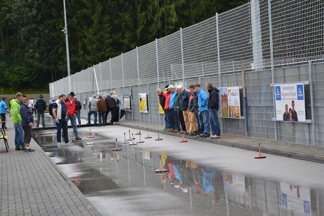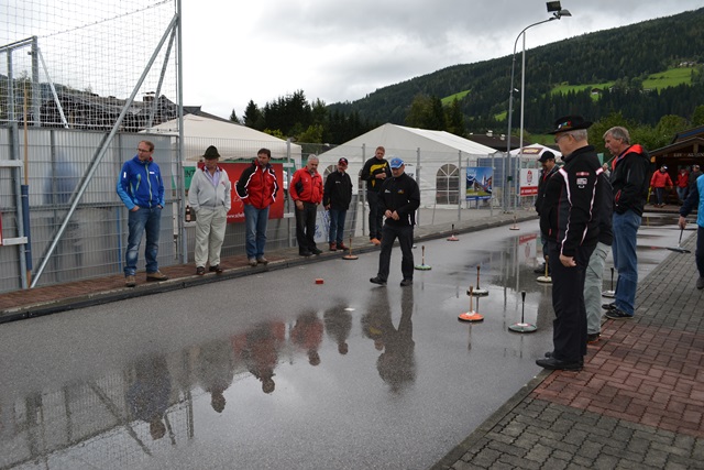 Alle Mannschaften traten gegeneinander an, so dass jedes Team 8 Runden zu spielen hatte. Das Wetter meinte es diesmal mit den Sportlern nicht gut. Die Bahnen waren auf Grund der starken Regenfälle sehr schwer bespielbar. Vom Start weg entwickelte sich eine superspannende Meisterschaft bei der die Führung mehrmals wechselte. Nach Halbzeit der Spiele (Runde 4) haben sich 5 Mannschaften ein wenig abgesetzt. In Führung war die Mannschaft aus der Ramsau (9,5 Pkt) vor Weissenbach (7,4 Pkt) Schladming (7,3 Pkt) Radstadt (7,3Pkt) und Altenmarkt (7,3Pkt). Die Steirer gaben Vormittag den Ton an.