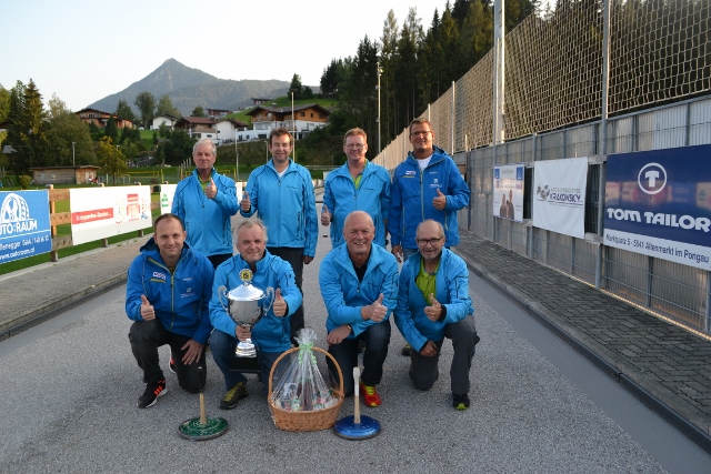 Bei sehr schlechten Wetter ( starker Dauerregen) begann die Veranstaltung pünktlich um 8 Uhr. Als erster Gegner wurde uns Eben zugelost. Die Altenmarker Mannschaft spielte von Beginn an stark. Fast jeder Schuss traf, der Sieg mittels Schneider war die logische Folge. Als in weiterer Folge auch die Mannschaft aus Radstadt mittels Schneider besiegt wurde, war klar, dass eine erfolgreiche Titelverteidigung möglich ist. Die Mannschaft spielte wie in den besten Tagen. Die Vorderleute, Rupert Grünwald, Georg Brüggler, Johann Oppeneiger, Bernd Baldauf und der neu in die Mannschaft gekommene Johann Prünster spielten großartig und brachten die Mannschaft immer vorzeitig in eine sehr gute Ausgangsposition.
