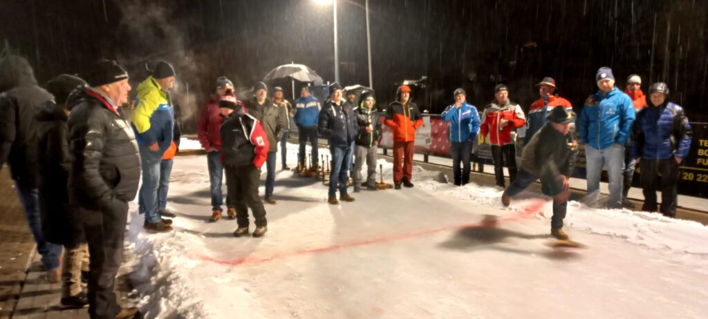 Nach dem Sieg im vergangenen Jahr trat unsere Mannschaft am 21. Februar 2026 erneut zum traditionellen Freundschafts‑Eisstockschießen gegen die Nachbargemeinde Flachau an. Trotz Regen und einer weichen Schnee‑Eisstockbahn gingen 40 Teilnehmerinnen und Teilnehmer an den Start.