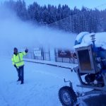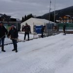 Die in den letzten Tagen kalte Witterung hat es möglich gemacht, dass der Eisschützenverein seine Schneekanone anwerfen konnte. Der Obmann Rupert Nocker und seine beiden Stellvertreter Georg Brüggler und Bernd Baldauf haben Freitag Nacht ( 1.12) und Samstag Nacht (2.12) den Kunstschnee erzeugt und am Sonntag (3.12) nachmittag haben 13 Mitglieder des Vereins den Schnee verteilt und die Bahn spielfertig hergestellt.